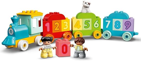 可愛いキャラクター、カラフルで扱いやすい積み木が付属したかずあそびトレインは、1歳半から2歳児の子どもたちが数字の数え方を学ぶのにぴったりのおもちゃです。