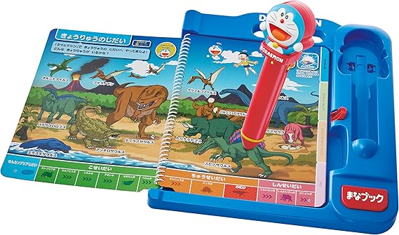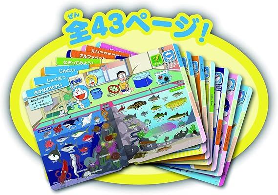 ドラえもんと一緒に楽しく遊んで学ぼう!付属のペンで絵本部の絵をタッチするとその絵にプログラムされたおしゃべりや効果音が鳴ります。
