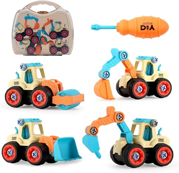JoyGrow 車おもちゃ 組み立ておもちゃ 工事カー 建設車両 4台セット DIY知育玩具 ショベルカー 工事ごっこ遊び 砂場遊び ミニカー 大工車 子供 男の子 女の子 プレゼント (カラフル)1