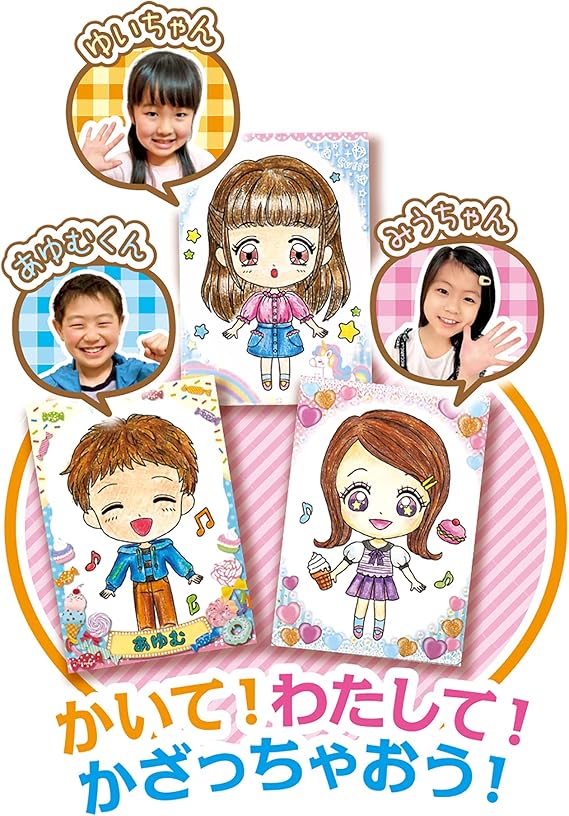 セット内容:本体、オリジナルペン1本、フィルムシート(髪型・顔・服・デコ計48枚)、シングルペーパー3種類各8枚、ワイドペーパー3種類各8枚