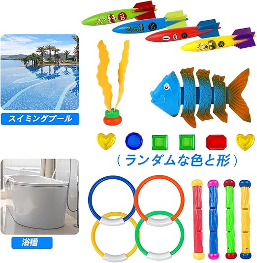 ??【ダイビングおもちゃセット】水泳用おもちゃはあなたの夏のプールに多くの楽しみをもたらし、スイミング おもちゃをキャッチするプールに泳いで、何度もそれを繰り返し、水泳訓練の目的があります。