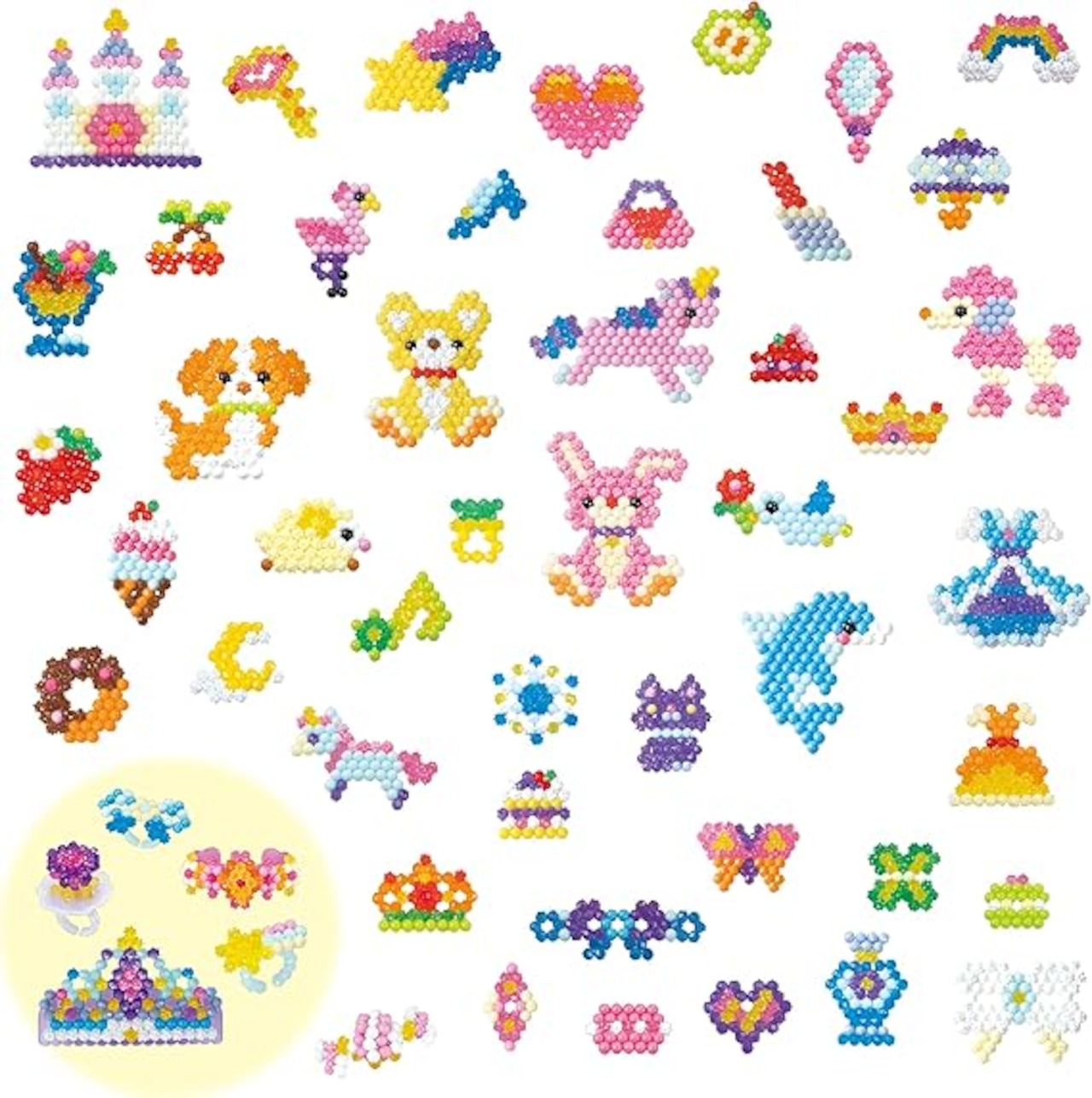 アクアビーズは、水でくっつく不思議なビーズ。きりふきで水をかけて、かわくとビーズがくっついてかたまるよ! すてきな作品をつくっちゃおう!