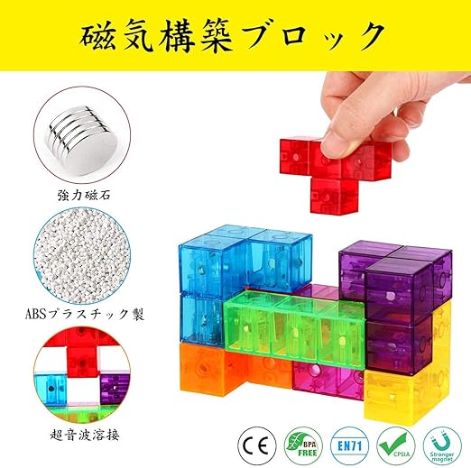 人気の脳トレ − 異なった色と形のマグネットブロックのおもちゃです。磁石内蔵で動物や乗り物など好きな形に組み合わせる事が出来ます;