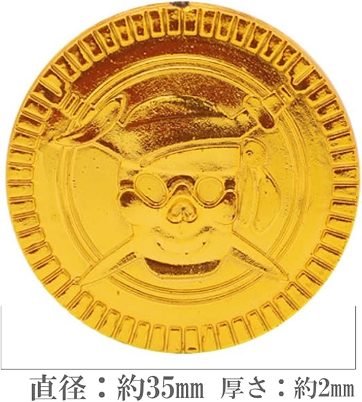 絵柄は宝箱と海賊ドクロ。コイン以外の物は付属しておりません。 海賊ごっこ、各種ゲームに。お遊戯会・舞台などで小道具として便利です!