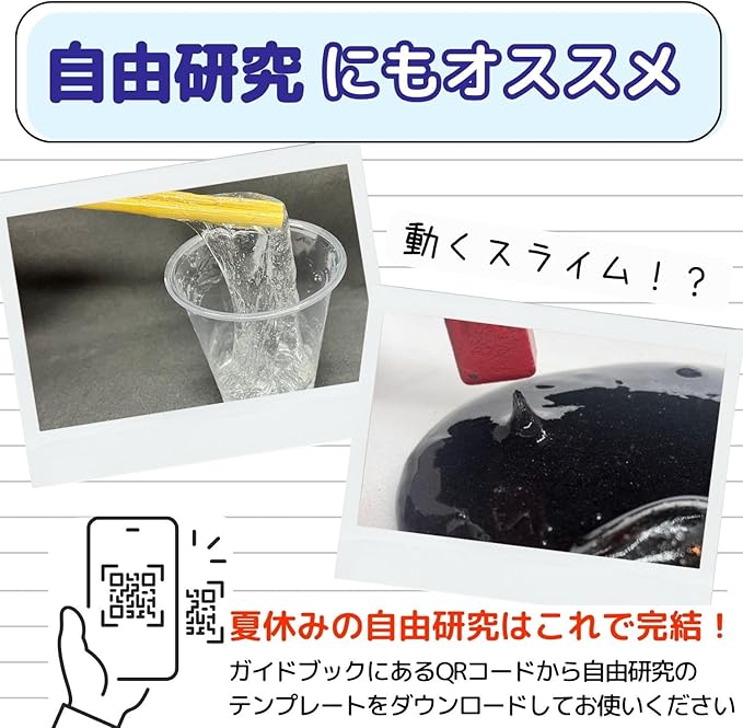 ? 【注意事項】対象年齢:6歳以上 小さなパーツがあります。誤飲にご注意ください。実験は必ず保護者の方と一緒に、十分に注意して行ってください。ガイドブックの説明をよく読み、手順に沿って実験を行ってください。実験によって、ご家庭でご用意いただく材料がございます。予めご了承ください。