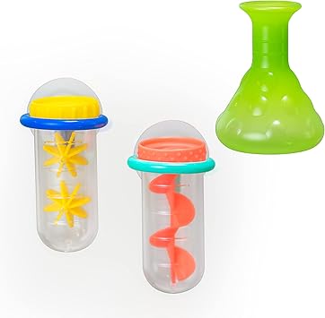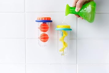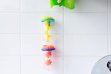 2つの試験管とフラスコをつかって、お風呂で理科の実験ごっこ♪