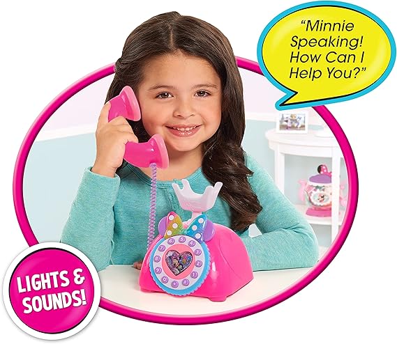 ミニーマウスのフレーズ、リアルな電話音、ライトアップ効果が特徴です。