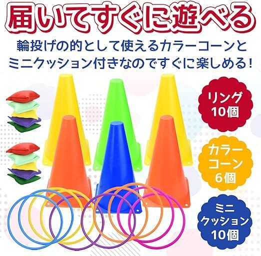 輪投げ みんなで遊べる 屋内 屋外 レクリエーション ゲーム カラーコーン ミニクッション 26点セット1