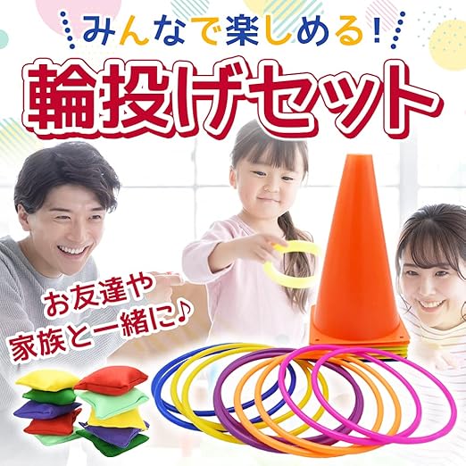 運動不足が気になる方にもおすすめ!ゲーム感覚で体を動かせる輪投げセットです。室内で遊ぶのに丁度いいサイズでご用意しました。