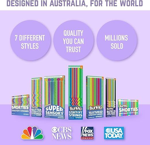 【 ストレス解消 】究極の落ち着きを感じる感覚玩具。当社のストレッチストリングは、ストレス解消と楽しさを兼ね備えています。 不安、ストレス、自閉症、ADHD、ADDをお持ちの方のために設計されていますが、誰もが愛用しています。 静かな時間とタイムアウトのための落ち着いたダウンコーナーに加えるのに最適です。 明るい色は、癒しの触覚体験に加え、視覚的刺激を与えます。