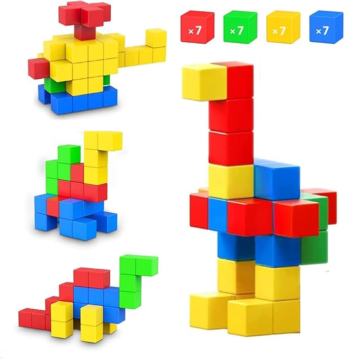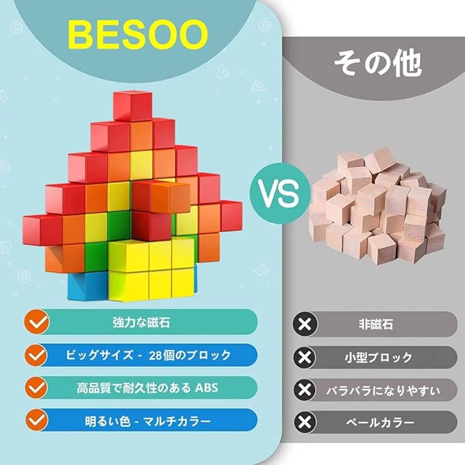 BESOO マグネットキューブ マグネット積み木 図形 体積 算数教材 知育玩具 DIY工具 脳開発パズル 建築セット(28個)1