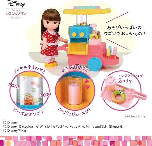 セット内容:・ワゴン本体:1 ・ドーナツ:3 ・アイス:3 ・ジュース:2 ・コップ:2 ・トング:1 ・トレイ:1 ・絵本(ミッキー&ミニーとたのしいおかいもの):1
