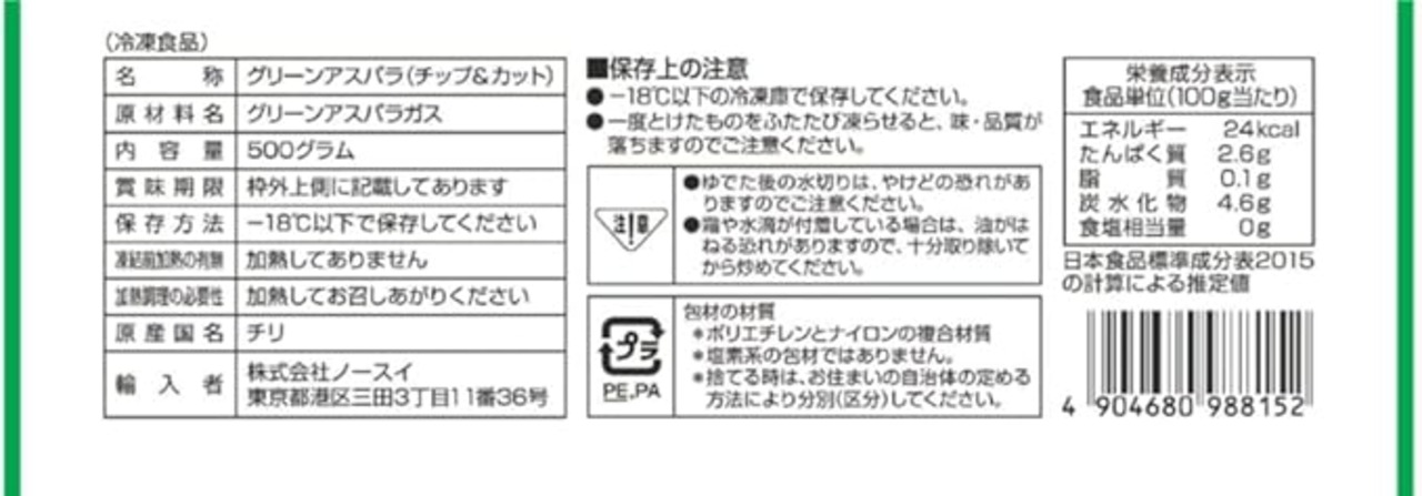 「冷凍」ノースイ カットアスパラ 500g×2