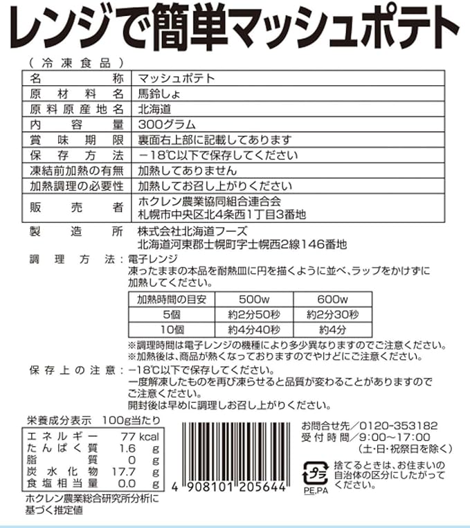 「冷凍」ホクレン レンジで簡単! マッシュポテト 300g×4