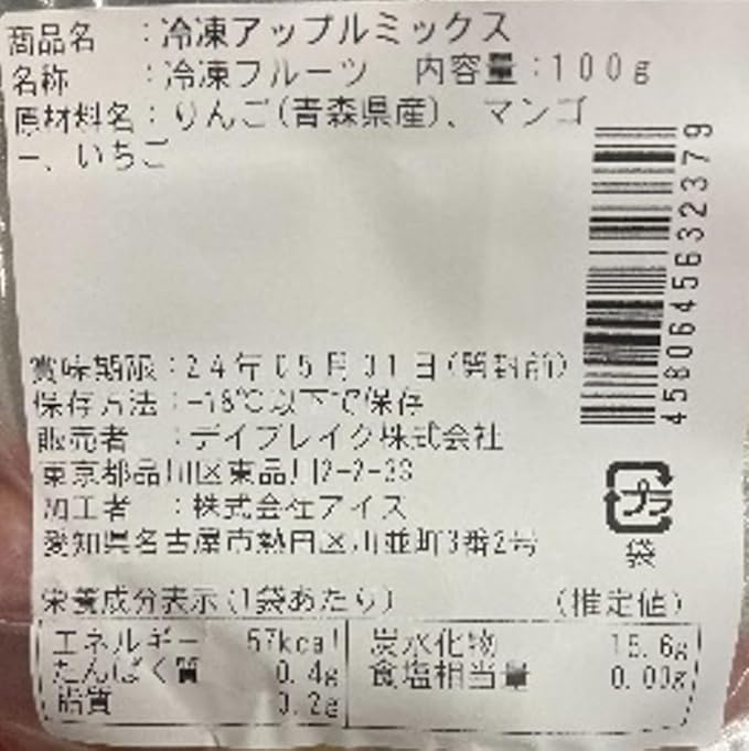 「冷凍」デイブレイク㈱ アップルミックス 100g×4