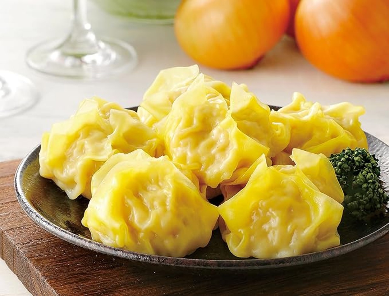 たまねぎ(北海道札幌市)、食肉(豚肉(北海道)、鶏肉(北海道))、皮(小麦粉(小麦(北海道)、植物油脂、還元水飴、食塩)、豚背脂(北海道)、日本酒、しょうゆ、でん粉、砂糖、食塩、こしょう、/酒精、加工でん粉、かんすい、着色料(ビタミンB?)、(一部に小麦・大豆・豚肉・鶏肉を含む)