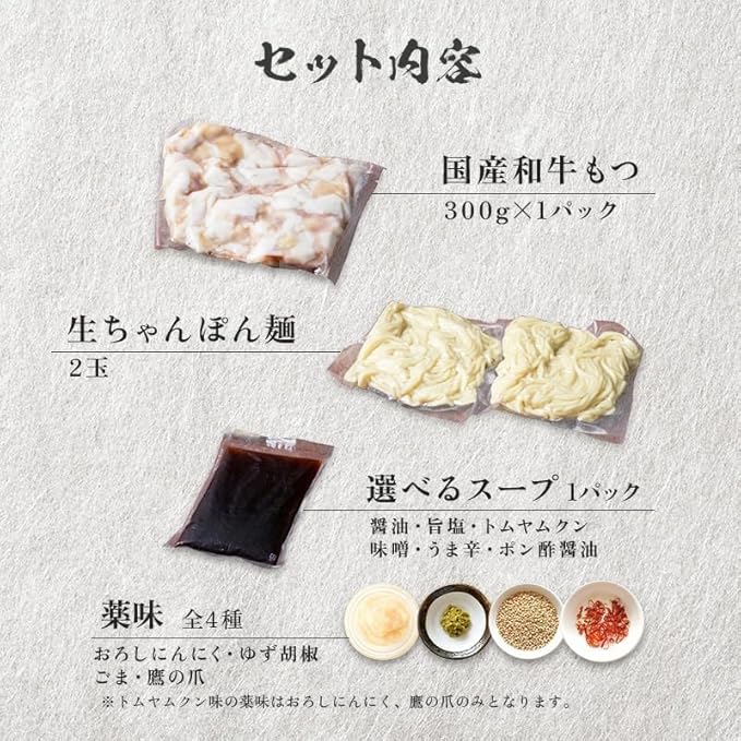 博多かんべえ国産和牛もつ鍋セット3~4人前 和牛もつ300g 醤油味スープ 特選ちゃんぽん?2玉 ニンニク 輪切り唐辛子 柚子胡椒 完全レシピ付 冷凍食品 お取り寄せ グルメ プレゼント ギフト 牛もつ鍋