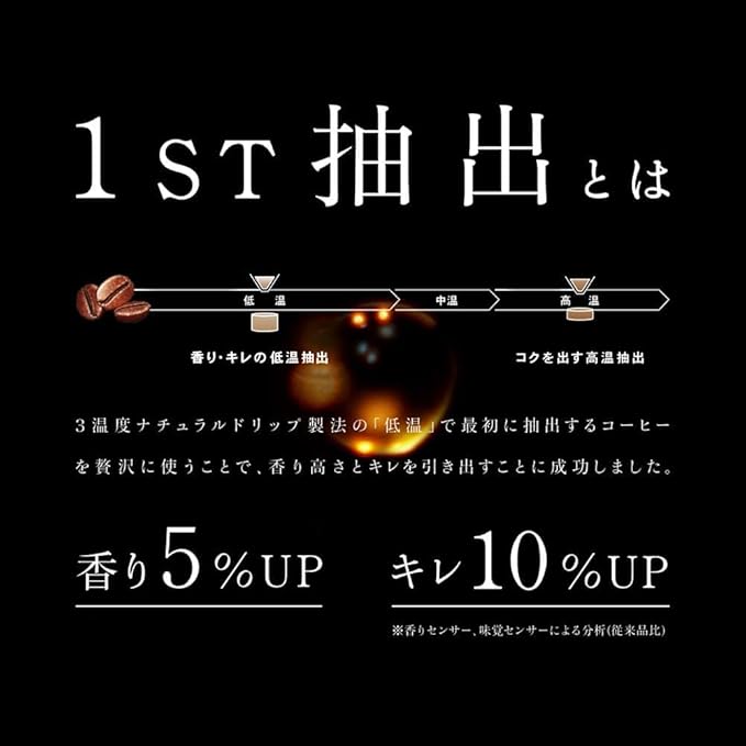 【UCCが独自に開発した「TTND製法」を採用】抽出工程で3つの温度帯(低温・中温・高温)の湯を段階的にレギュラーコーヒーに注湯。低温度帯で香り、中温度帯