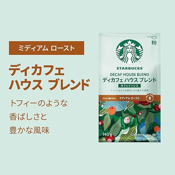 スターバックス コーヒー ディカフェ ハウス ブレンド 140g ×2袋【 粉 】【 レギュラー コーヒー 】1