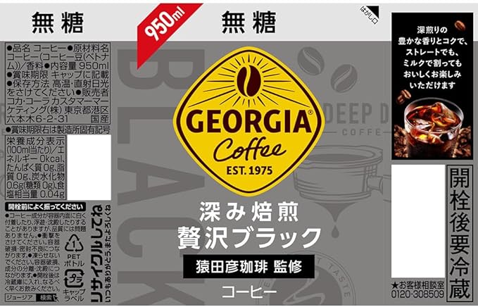 コカ・コーラ ジョージア 深み焙煎贅沢ブラック 無糖 950mlPET×12本[アイスコーヒー]1