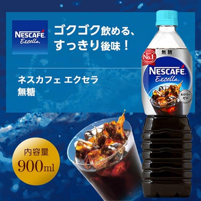 【Amazon.co.jp限定】 ネスカフェ ボトルコーヒー エクセラ 無糖 900ml ×12本【アイスコーヒー】【コーヒー ペットボトル】1