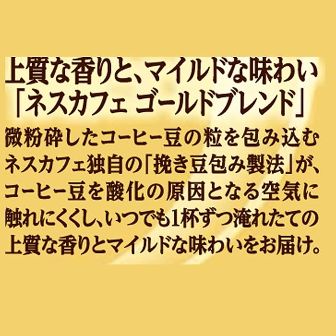 いつでも気軽に、淹れたての香りとコーヒー本来の味わいを1杯ずつお楽しみいただける、ネスカフェ独自の「挽き豆包み製法」