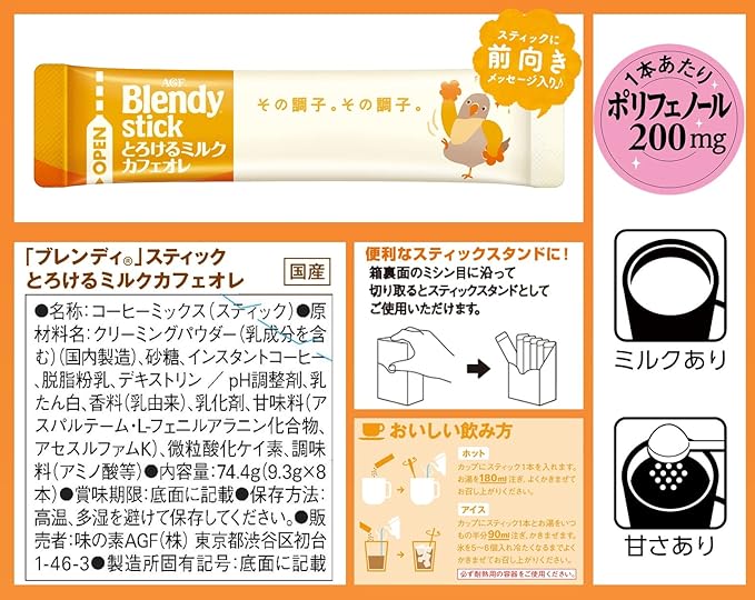 AGF ブレンディスティック とろけるミルクカフェオレ 8本 ×6箱 【 スティックコーヒー 】 【 粉末 】1