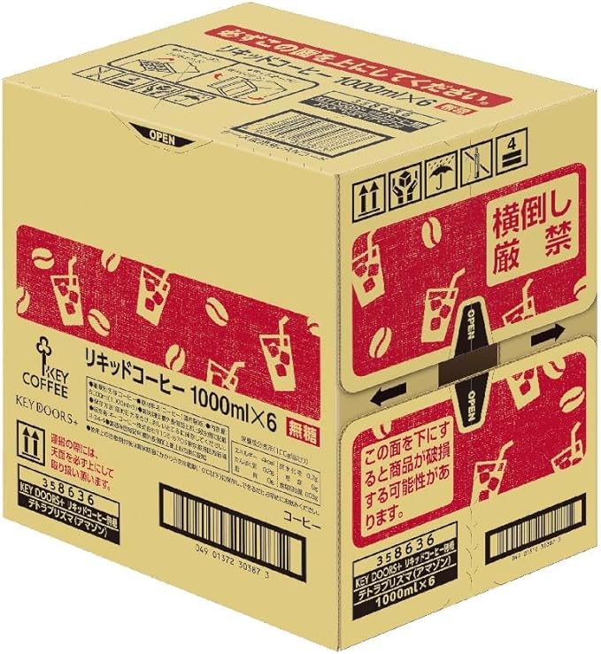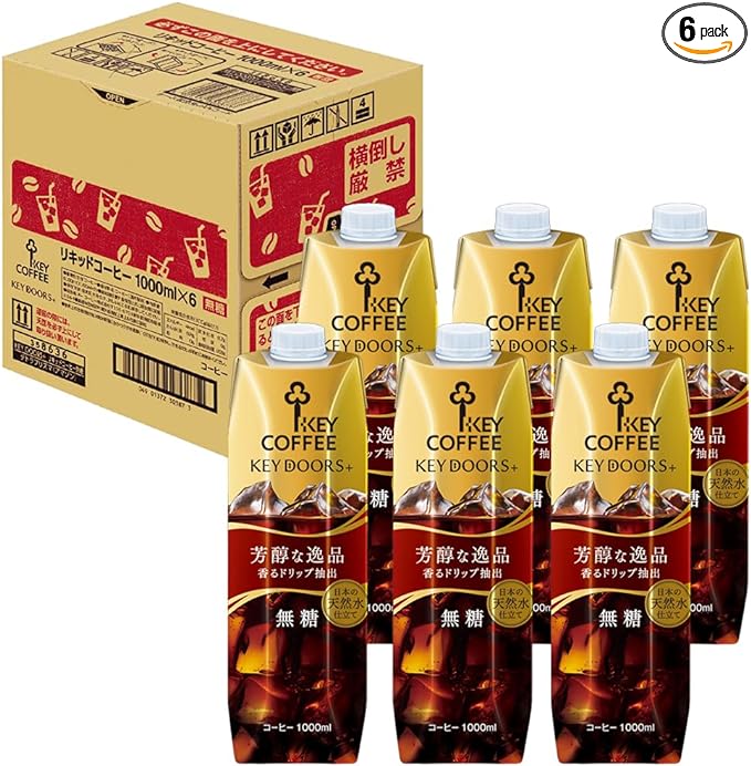 【Amazon.co.jp限定】 キーコーヒー リキッドコーヒー 天然水 無糖 テトラプリズマ 1000ml ×6本1