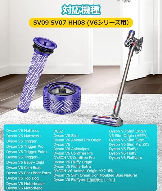 ダイソン V6 掃除機 用 フィルター 掃除機フィルター HH08 SV09 SV07 シリーズ用 互換フィルター プレフィルター * 2個 ポストモーターフィルター *2個 互換品 水洗いOK1