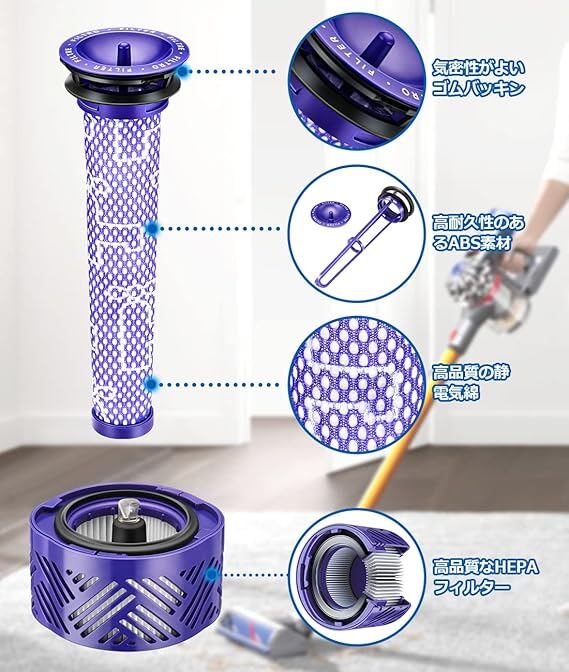ダイソン 掃除機 V6 シリーズ用 フィルター SV09 SV07 HH08 掃除機フィルター プレフィルター * 2個 ポストモーターフィルター *2個 4個セット 互換フィルター 互換品 水洗いOK1