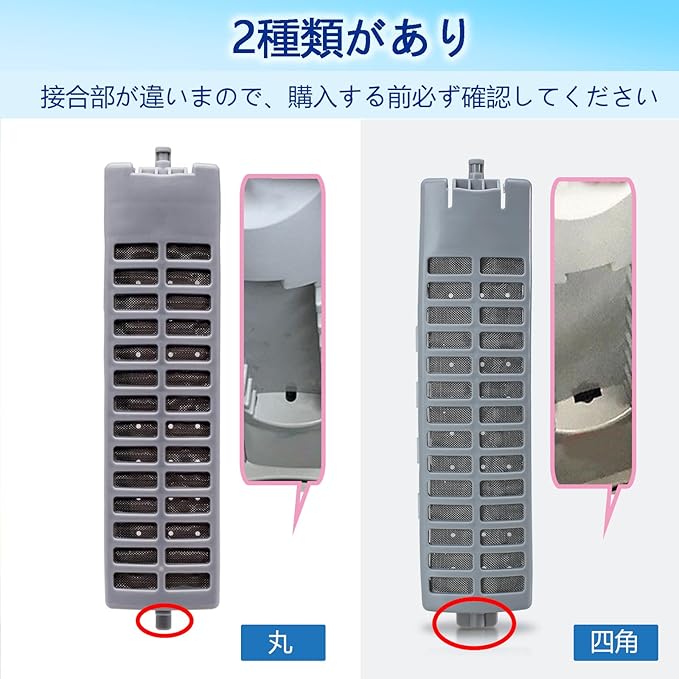 ※ご購入の際は、洗濯機のメーカー、本体型番、フィルター形状をご確認ください。特に違う形状のフィルターを複数個使用されている洗濯機の場合は、必ず交換したいフィルターの形状をご確認ください。