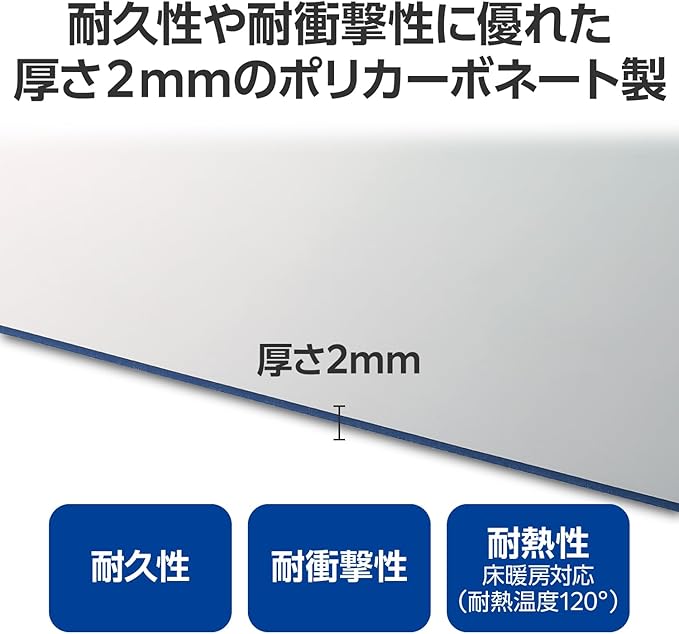 耐久性や耐衝撃性に優れた厚さ2mmのポリカーボネート製です。