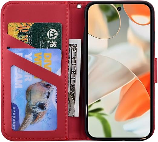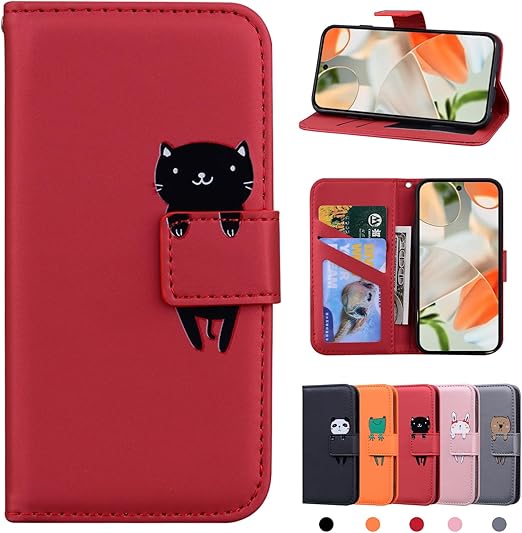 CASAFUNY Google Pixel 9/Pixel 9 Pro ケース 手帳型 通用 お洒落 カバー google ピクセル 9 プロ/ピクセル9 ケース 手帳型 耐衝撃 高級PUレザー 携帯カバー googleピクセル9 ケース かわいい動物柄カバー pixel9 ケース 軽量 手帳型 pixel9ケース 人気 カード収納 横置きスタンド機能 内蔵マグネット(6.3インチ)赤猫1