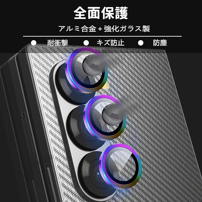 SeGinn Samsung Galaxy Z Fold 6 SC-55E 対応 カメラフィルム レンズカバー 金属 ケース 独立型 カメラ保護フィルム アルミ合金 高透過率 露出オーバー防止 耐衝撃 防塵 全面保護 薄型 強化ガラス Galaxy Z Fold 6 用 レンズフィルム (Multi-Coloured)1