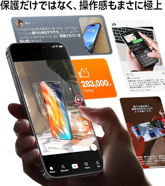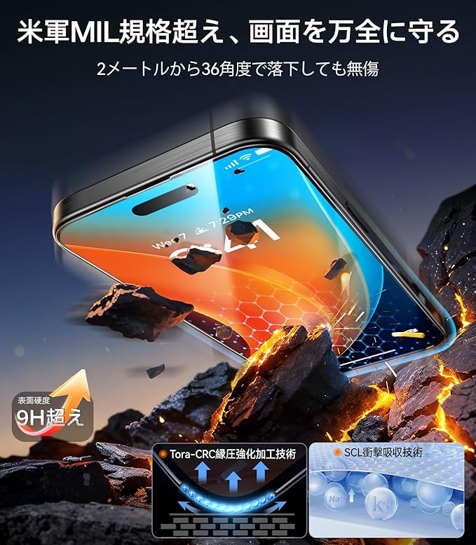 【航空宇宙用材料・表面硬度9H+Hv673】iPhone iPhone 6用/iPhone 5用 ガラスフィルムは日本製AGCの航空宇宙技術から生まれた「Dragontrail」(04 6.3インチ)ガラスを採用し、表面硬度が9Hを超え、鉱石の硬さを示すビッカーズ硬度Hv673を実現する。これにより、耐衝撃性が市販品よりも0倍向上し、激しい衝撃や圧力、摩擦からスマホを確実に守る。過去0年間にわたる保護技術の革新を受け継ぎ、世界0カ国で累計「9600万枚」を販売した。しかも、これまで