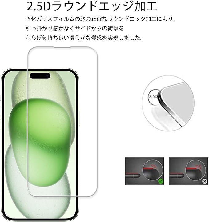 KPNS ガイド枠付き日本素材製 強化ガラス iPhone15 / iPhone16 用 ガラスフィルム 強化ガラス カバー アイフォン15 / 16 保護フィルム 【2枚セット】1