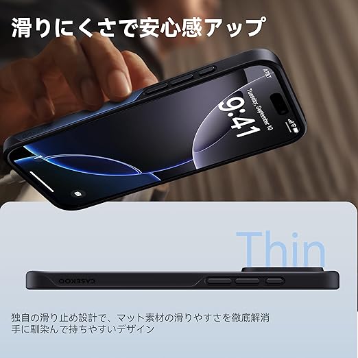 【米軍MIL規格・指紋防止】CASEKOO iPhone 16 用 ケース 耐衝撃 滑り止め 指紋防止 米軍MIL規格 マット仕上げ ストラップホール付き 黄変防止 耐久性 カバー ワイヤレス充電対応 アイフォン 16 用 6.1 インチ ケース(マットブラック)1