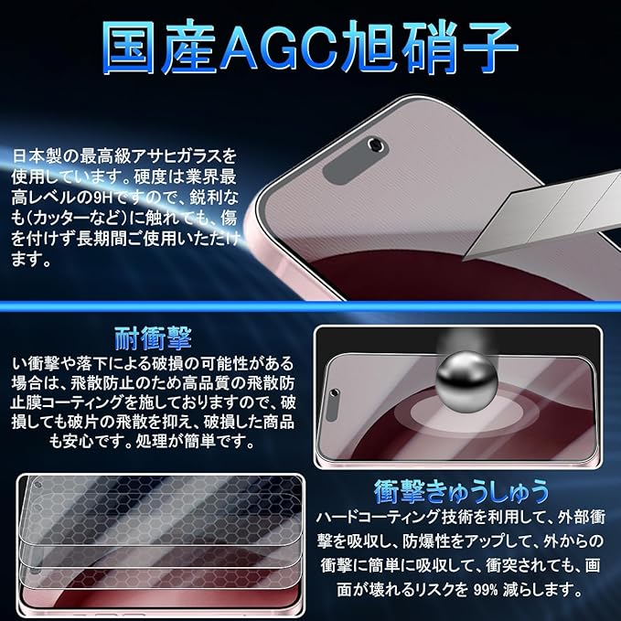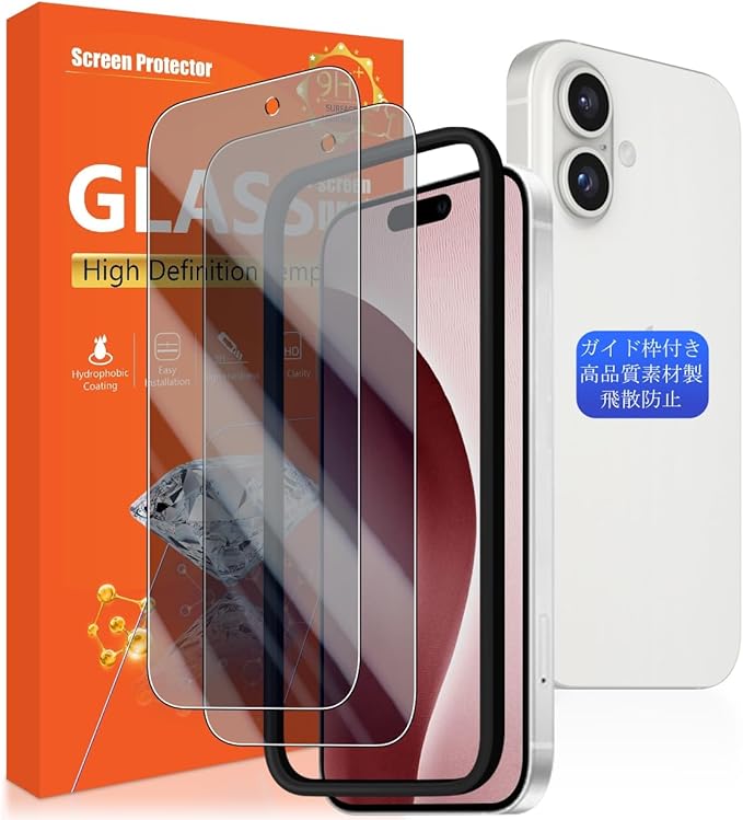 YWXTW 対応 iPhone16 ガラスフイルム 覗き見防止 【2枚セット AGC旭硝子 ガイド枠付き 】対応 iPhone16 フイルム のぞき見防止(2枚) 対応 アイフォン16 保護フィルム のぞき見 プライバシーフィルム 強化ガラス 【 硬度9H 耐衝撃 飛散防止 厚さ0.26mm 気泡ゼロ 3D Touch対応 高感度 指紋防止 ラウンドエッジ加工 】 (対応 iPhone16)1