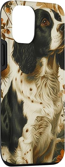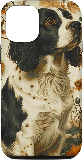 iPhone 15 Pro イングリッシュスプリンガー スパニエル 犬 フローラル コテージコア 美学 スマホケース