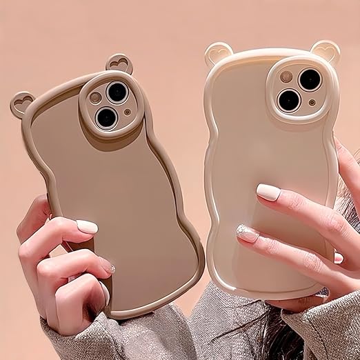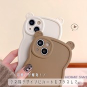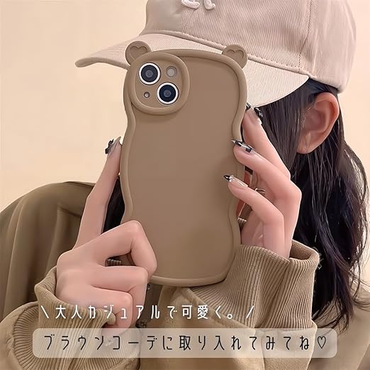 saymi クマ 耳 ハート ウェーブ おしゃれ 韓国 iPhone12 ケース すべすべマットな手触り 可愛いシルエット 淡色 ミルク ホワイト チョコ ブラウン 茶色 アイボリー (チョコブラウン, iPhone12)