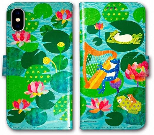 iPhone15 Pro ケース 手帳型 スマホケース カバー iphone15pro ケース アイフォン15プロ アイフォンケース スマホカバー 横開き カード入れ 手帳 動物 アニマル柄 COMOデザイン お昼寝カエル ハープをひくカエル ハスの葉