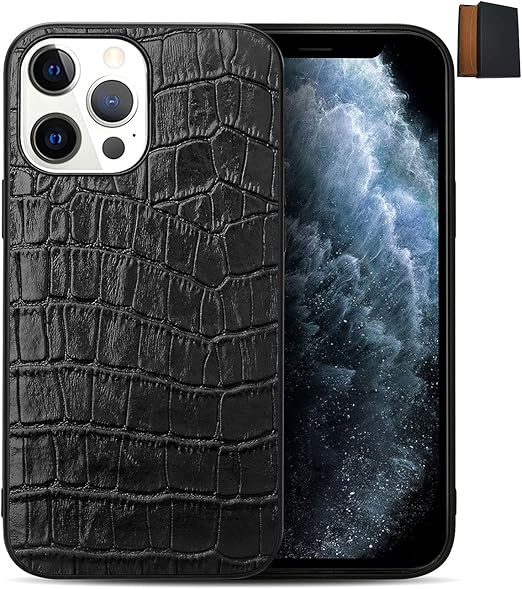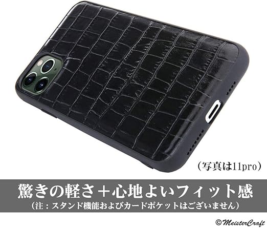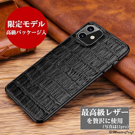 【Amazon.co.jp 限定】 iPhone 15 Pro Max ケース 本革 レザー クロコダイル 仕上 金運アップ 軽量 携帯カバー スマホケース ワイヤレス充電 安心の国内メーカー・サポート 【有名ブランドも採用 ISA社最高級ドイツレザー】 MeisterCraft ブラック ギフト箱入 XA094B