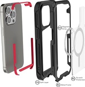 メインフレームに高強度のアルミ素材を用い、背面はクリアのポリカーボネートでスタイリッシュにデザインされた衝撃に強いスリムケース