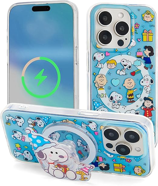 iPhone 15 Pro max ケース MagSafe対応 ワイアレス充電 黄変防止 +【マグネット式/スマホグリップ/Magnetic Phone Grip/スマホスタンド 機能】 人気アニメのデザイン (ブルー, iphone 15 pro max)