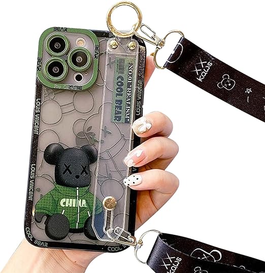 Arpe 可愛い ベアブリック カウズ スマホケース iPhone 15 Pro Max 用 ケース ショルダーストラップ 首かけストラップ 携帯ストラップ リストレット キックスタンド シリカゲル保護カバーアイフォン 15 Pro Max ケース カラー(緑)