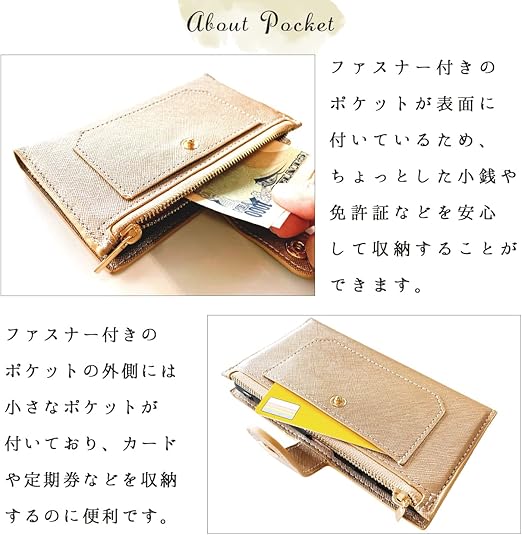 iPhone15 Pro 対応 ケース 手帳型 カバー iphone15proケース iphone15proカバー アイフォン15プロケース iphone15pro iphone 15pro プロ アイフォン アイフォン15プロ 手帳型ケース ポケット付き サフィアーノ 【NB】ゴールド