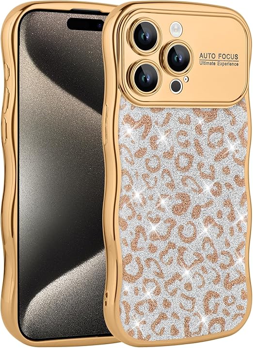 ITELINMON iPhone 15 Pro 用 ケース ヒョウ柄 クリア キラキラ TPU素材 韓国 耐衝撃 透明 薄型 軽量 ギフト 大人 アイフォン15pro カバー 6.1インチに対応 金色 ゴールド