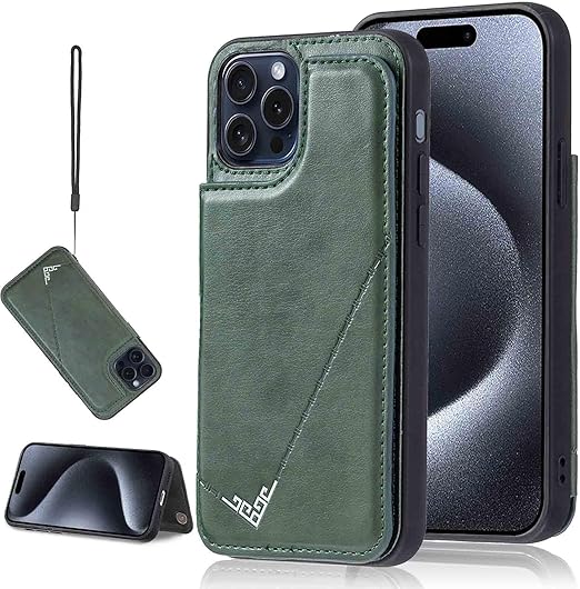 【Aqier】カバー 用 iPhone 15 PRO 6.1 inch ケースカード (ダルグリーン)アイフォン15プロ 6.1インチ スマホケース 背面カード 収納 軽量 多機能 ケース 手帳型 IPHONE15pro GREEN