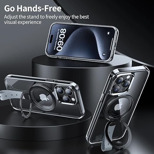 多機能固定ベースのiPhone 15 Pro Maxケースは、リベットベースよりも安定している射出成形ラップワンピース成形のアップグレード技術を採用しており、15kgの引っ張り力に耐えることができるため、使用中にスタンドが緩んだり外れたりすることがありません。ケースの背面パネルにしっかりと埋め込まれており、何万回も開閉しても耐久性があります。360度回転