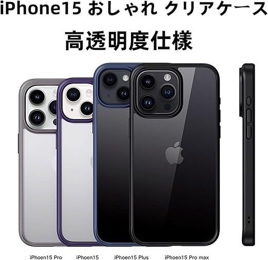 【シンプルでかわいい】対応機種 iPhone 15proケース クリア 韓国、 サイドフレームはシリコンフレーム同色ボタンも押しやすい。側面のアクセントカラーがかわいい。iPhone 15 pro ケース クリアケース。